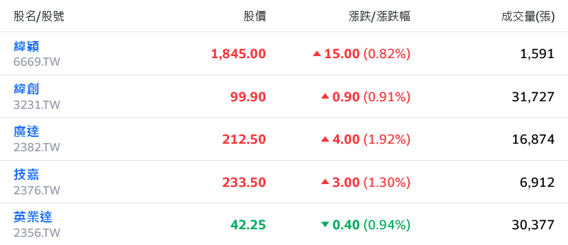 AI概念股挺身而出,廣達、技嘉漲幅逾1%、緯創力圖收復百元關卡,緯影、光寶科穩守紅盤上。