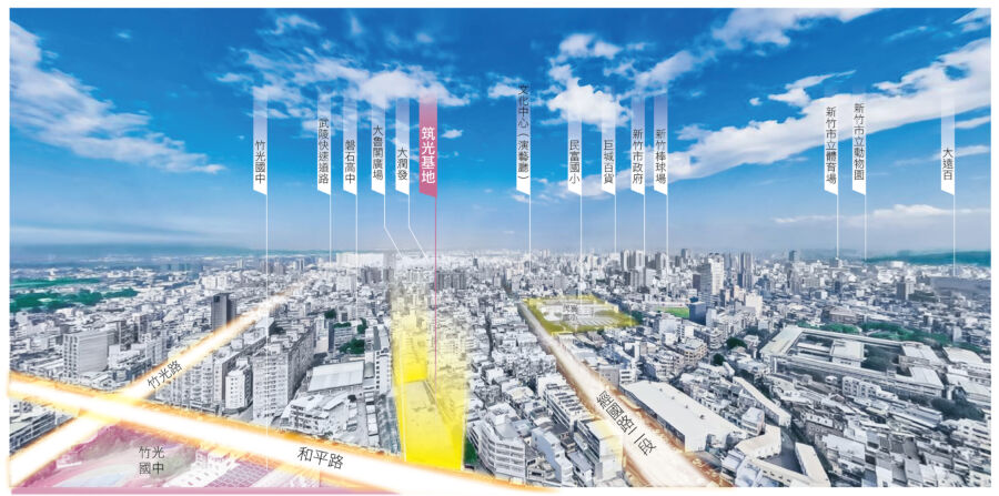 「竹慶筑光」位處新竹市區核心首圈內,鄰近西大路大遠百商圈,商業氣息及生活機能濃厚。同時,具備竹光國中首排學區房優勢,下樓直達校園,開窗享受至高視野,竹慶建設打造出唯一、僅見、獨到的景觀御邸。