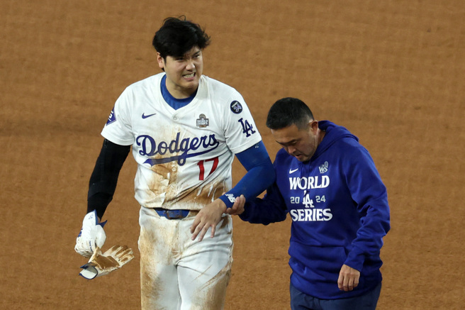 大谷是在世界大賽第二戰7局下盜壘意外傷到左肩,他滑二壘時以左手撐地傷到左肩膀,當場向二壘審叫暫停痛得在地上滾。隨後大谷以日語回答防護員,他的左肩膀可能脫臼,讓防護員扶著他的左手臂退場。